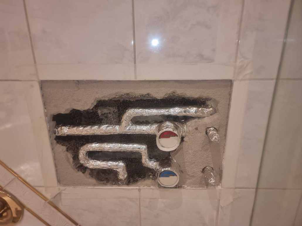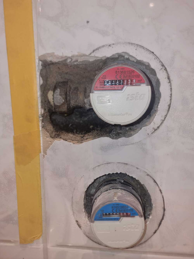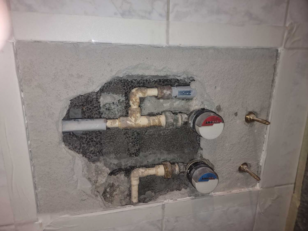 Die Untersuchung ergab eine Undichtigkeit an einer Verschraubung im Bereich des Wasserzählers. Die betroffene Stelle wurde freigelegt, um eine fachgerechte Reparatur durchzuführen. Anschließend erfolgte die Wiederherstellung der Fliesen, sodass der betroffene Bereich optisch und funktional in einwandfreiem Zustand ist.