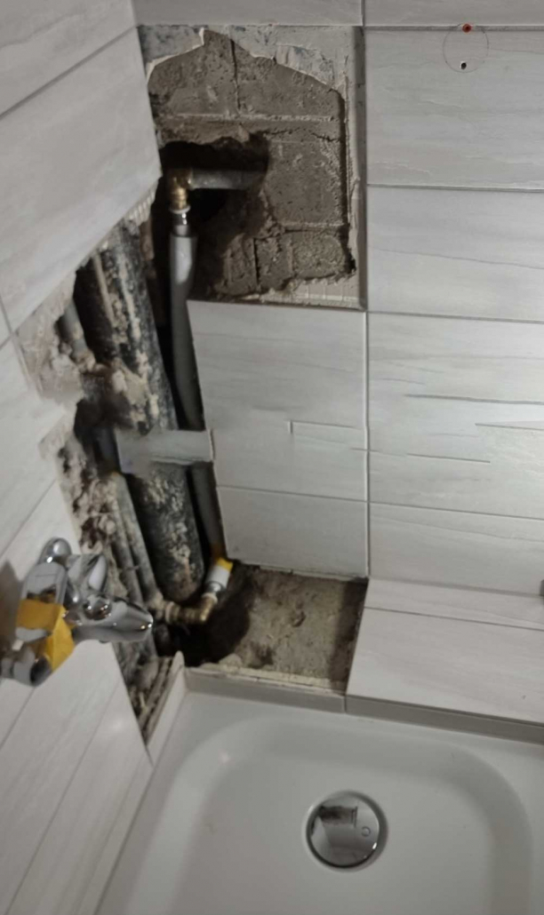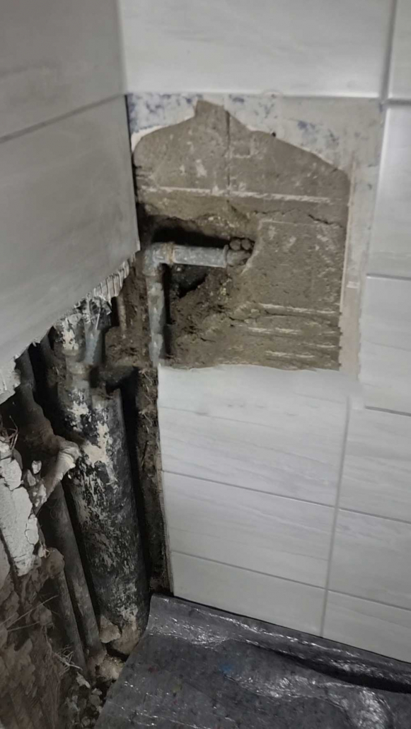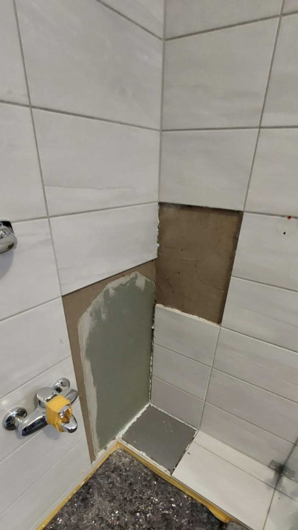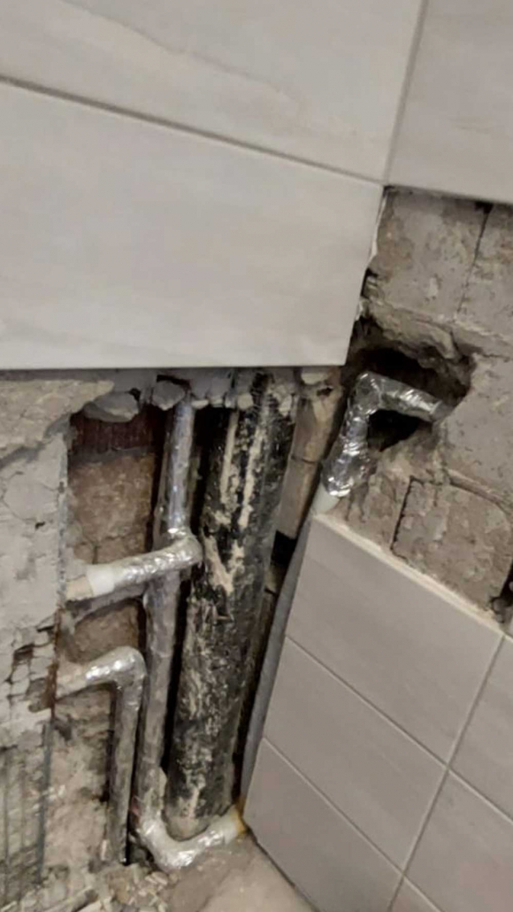 Um den Schaden zu beheben, mussten die Fliesen im betroffenen Bereich sorgfältig ausgebaut werden, um die Rohrleitung freizulegen. Die Überprüfung ergab, dass der Defekt direkt am Winkel einer alten Rohrleitung lag. Unsere Fachkräfte haben die beschädigte Rohrbruchstelle ausgebaut und die defekte Rohrleitung durch eine neue, hochwertige Lösung ersetzt.