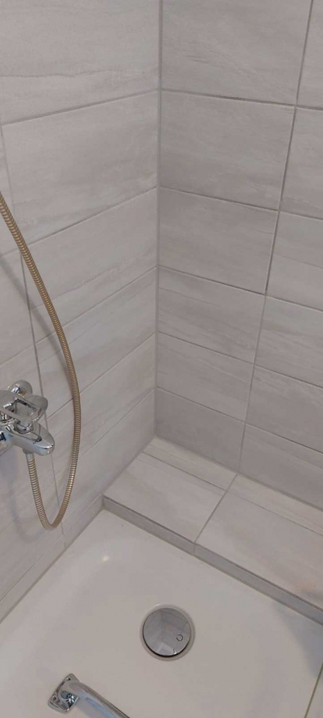 Nach der Reparatur wurden die Wand- und Bodenbereiche im Kellergeschoss wiederhergestellt. Die finalen Fliesenarbeiten und Malerarbeiten stellten sicher, dass der Bereich wieder in einwandfreiem Zustand ist.