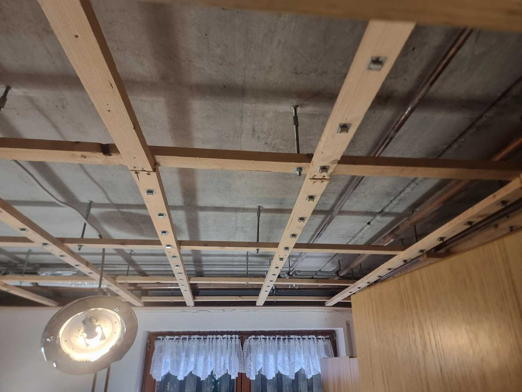 ✔ Erneuerung der Holzdecke im Kellergeschoss